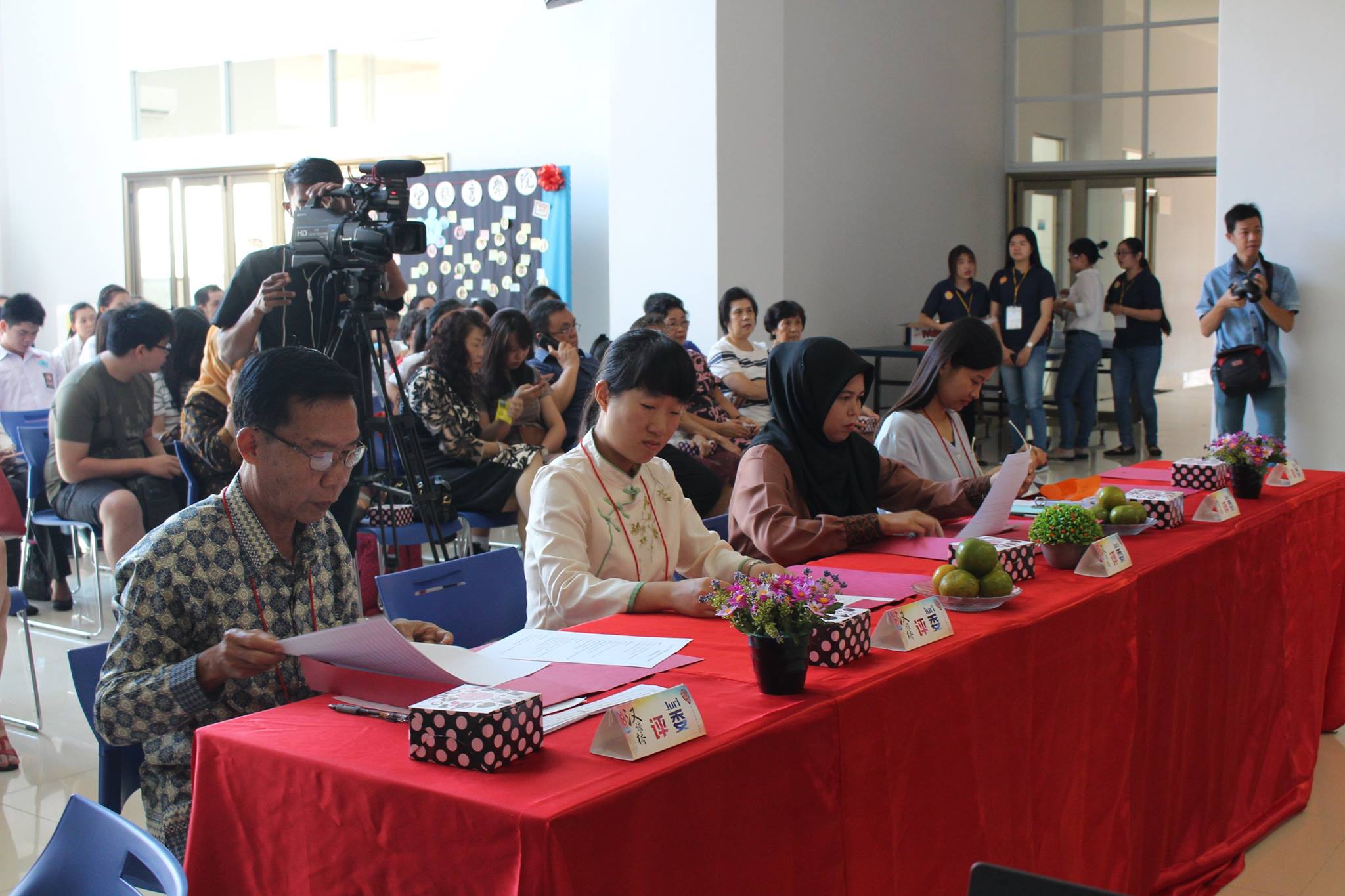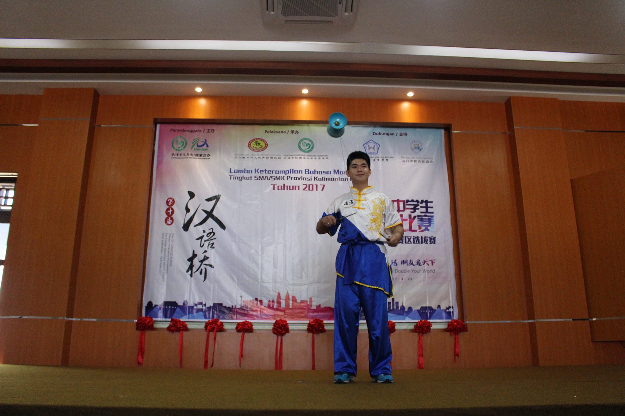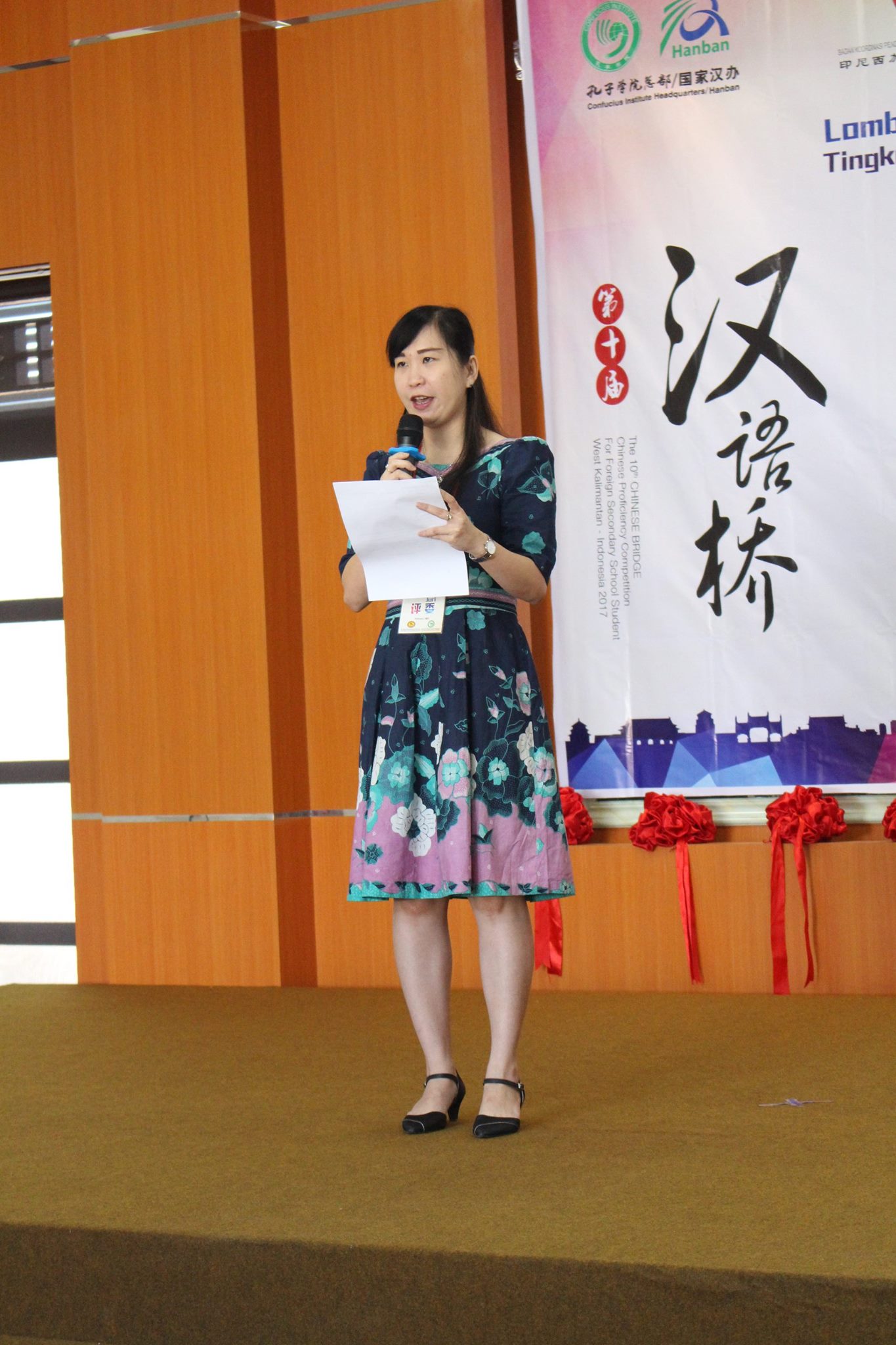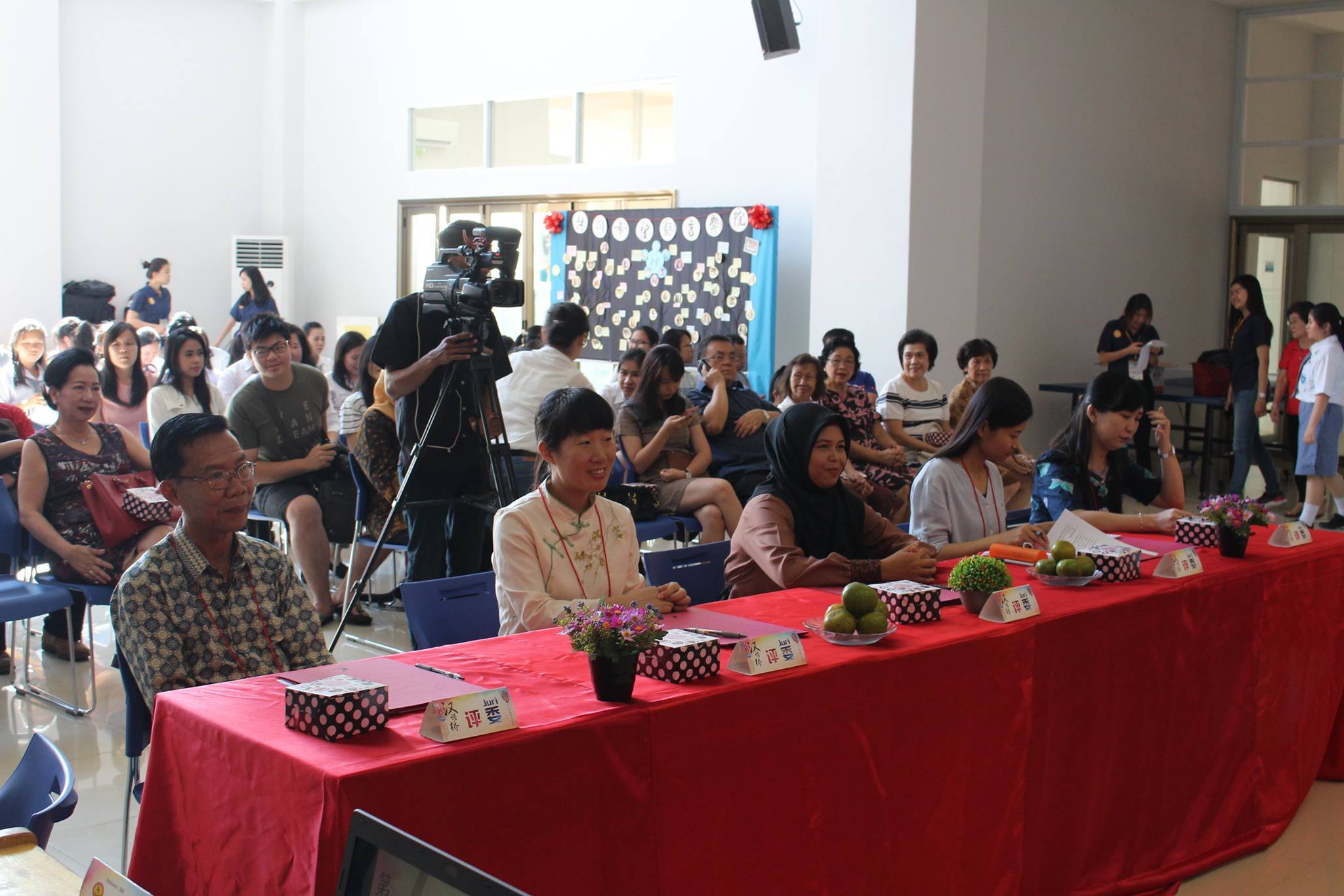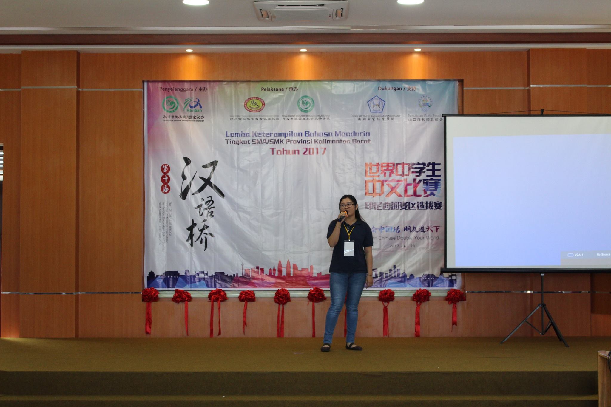 【坤甸日报讯】2017年4月23日,由丹戎布拉国立大学孔子学院和西加华文教育协调机构联合承办,由坤甸共同希望语言学院和山口洋教师联谊会协办的第十届“汉语桥”中文比赛——印尼西加省赛区选拔赛坤甸市以共同希望语言学院举行。莅临比赛现场的嘉宾有坤甸市议员刘建源先生,丹大孔院中方院长冯光火先生,西加印中商务理事代表BAPAK JIMMY THE,西加华文教育机构副主席陈得时先生、理事吴宝安先生、李鸿时先生、余炜华老师、贝成群夫人、沈丽璇女士、林瑞璇女士、刘玉瑛老师、薛惠芳老师、林丽君老师,西加协调驻道房代办黄思渊女士,坤甸共同希望语言学院校长IBU SUKARSIH DPANJAITAN MAS’UD, S.E., M.M.以及众评委、师生等逾百人出席了此次比赛。